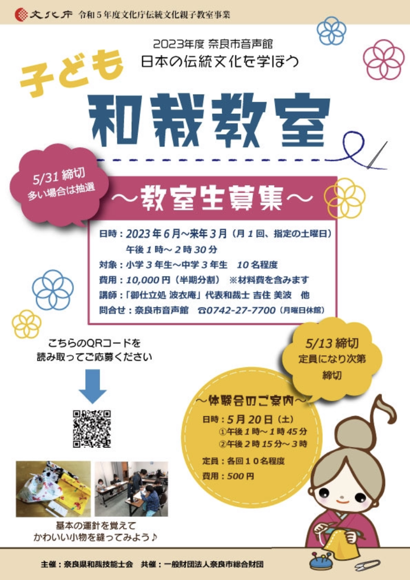 そして、縫う楽しみを知り、世界を広げてもらいたいと願っています。奈良市音声館 日本の伝統文化を学ぼう